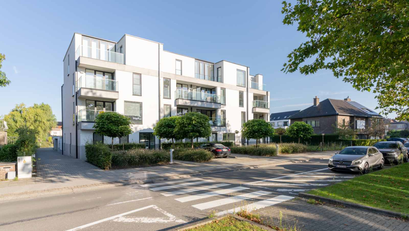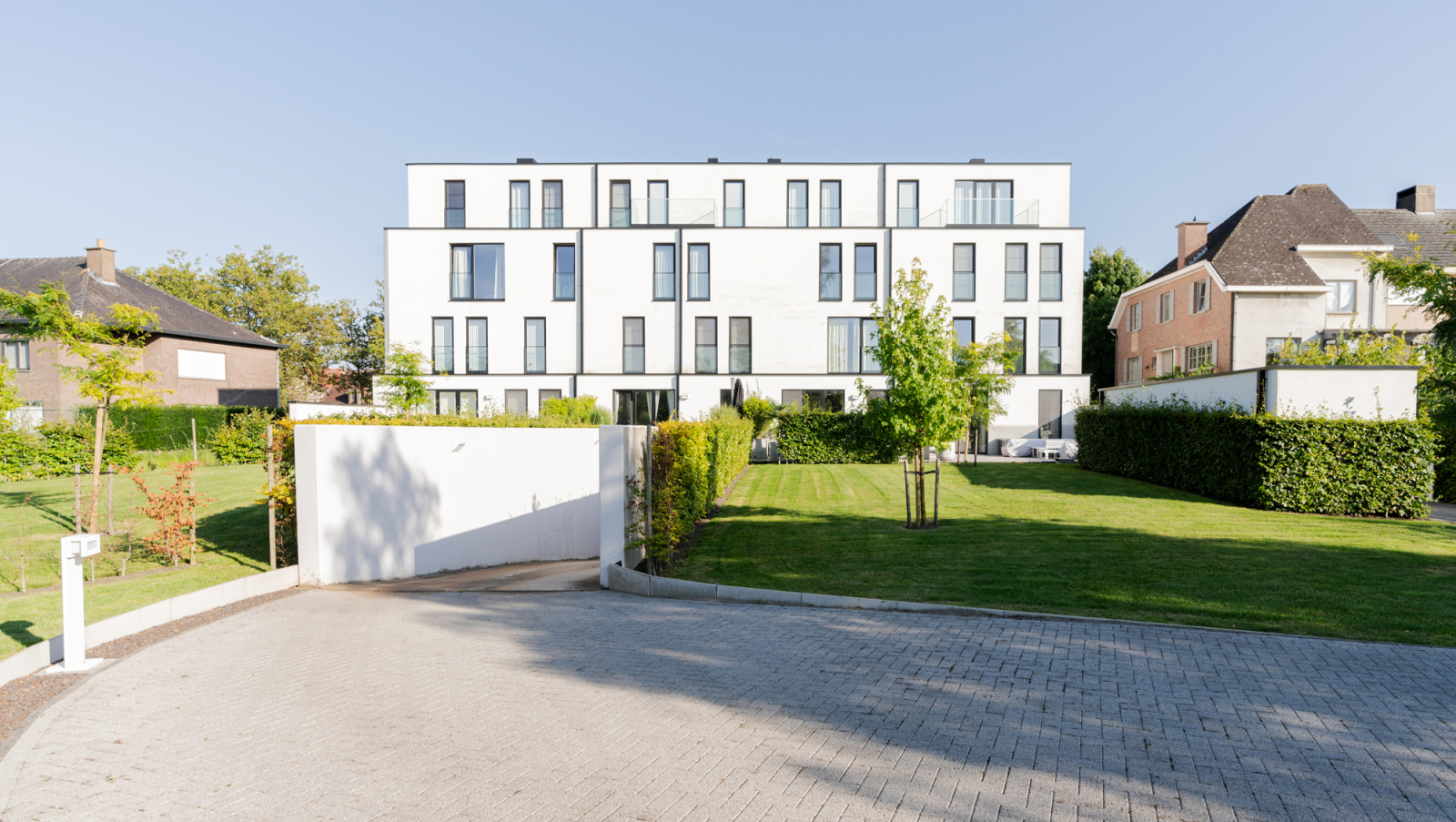 Deze meergezinswoning van 14 appartementen werd gerealiseerd op een braakliggend perceel. Het project omvat drie bouwlagen en ondergrondse parking. Langs de toegang tot de ondergrondse garage bevindt zich een overdekte fiets- en afvalberging. Deze berging wordt voorzien van een groendak welke afwatert op eigen terrein.