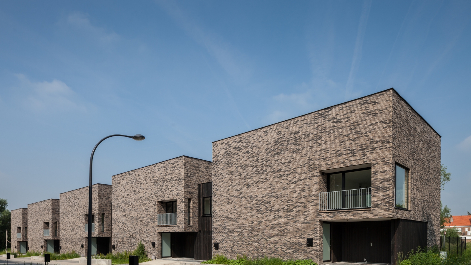 Elke woning is opgevat als een bel-etagewoning. Langs tuinzijde is telknes een ruim inpandig terras voorzien. De terrassen zijn gelinkt aan de leefruimtes op de eerste verdieping en toegankelijk via een buitentrap. Achter de gesloten gevelvlakken schuilen patio’s die het licht in de woning trekken, een zekere ritmiek aan het straatbeeld geven en de privacy van de bewoners garanderen.